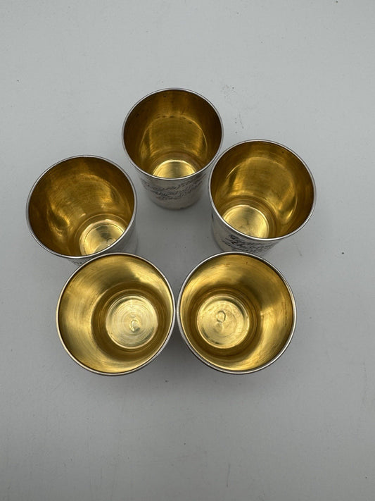 RARE 5 Soviet Armenian 875 Silver Vodka Cups AA9 Star Yerevan Opera 1955 Gilt