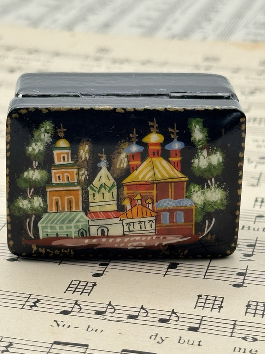 Vintage Russian Style Hand Painted Trinket Box SIGNED 2.25” X 1.5” X 1.25”