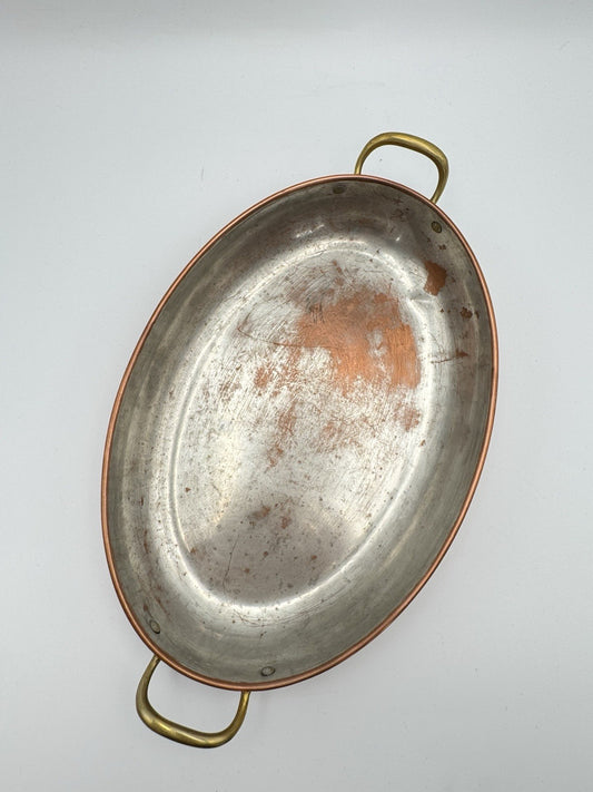 Vintage Tagus Portugal Copper Oval Roasting Pan 11.8” x 7” Brass Handles