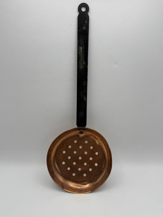 Antique Copper Skimmer Ladle with Iron Handle – Rustic Farmhouse Kitchen Tool