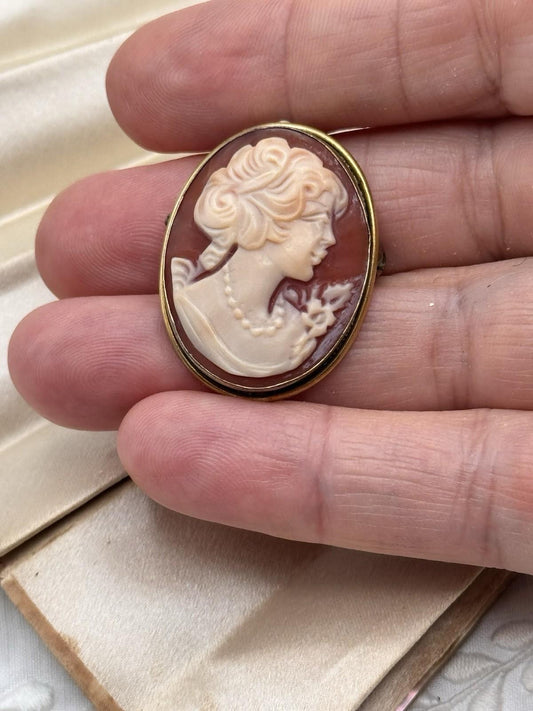 Vintage Cameo Brooch Pendant (14K GF Gold-Filled) 1” Oval