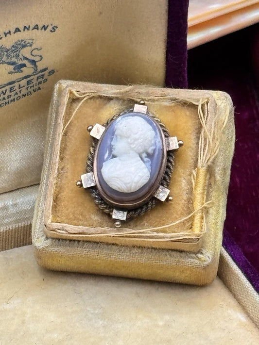 Antique Agate Cameo Brooch 0.75 Inch Victorian w/ Replacement Pin