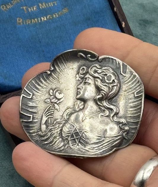 Antique Brooch Art Nouveau Solid Silver Lady Rose Repousse C1900 1.75 x 2 Pin
