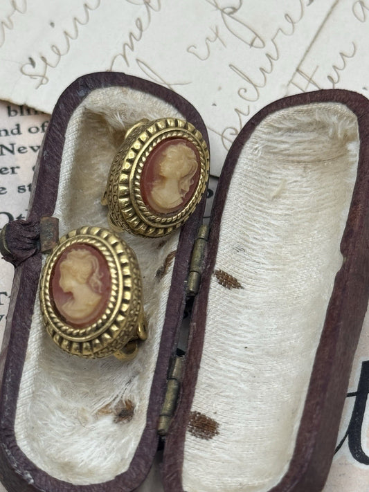 Vintage Faux Cameo Post Clip-on Earrings Goldtone For Pierced Ears‼️