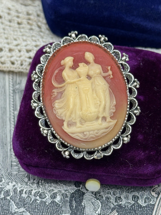 Vintage Faux Cameo Brooch Pendant RESIN - ESTATE FIND