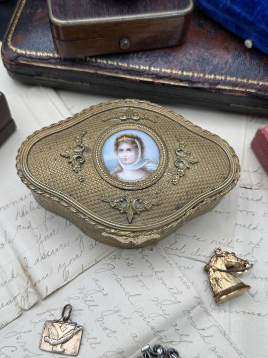 Antique French Style Porcelain Trinket Jewelry Box Painted Portrait Queen Louise