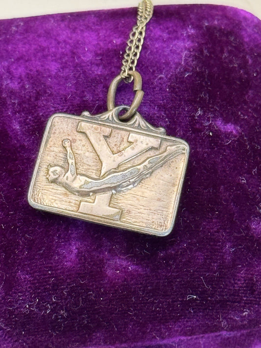 1944 Sports Charm Pendant Necklace Diver “Y” The Kinney Co. Gold-Filled