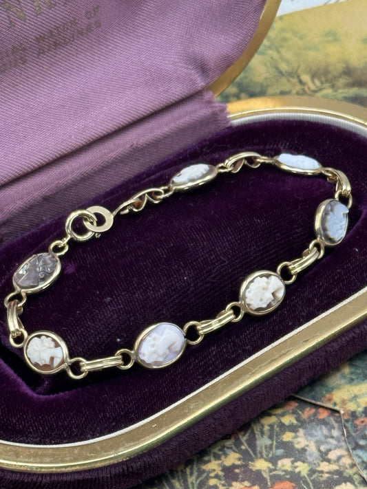 Vintage Carved Cameo Gold-Filled Bracelet Circa 7” ESTATE FIND