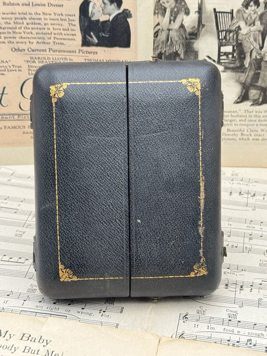 Antique Folding Easel Travel Portrait Case Leather With Oval Picture Frame