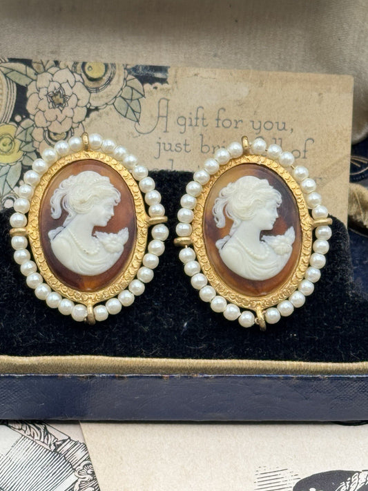 Vintage Cameo Resin Earrings Museum Shop Quality Converted To Post NO BACKS‼️