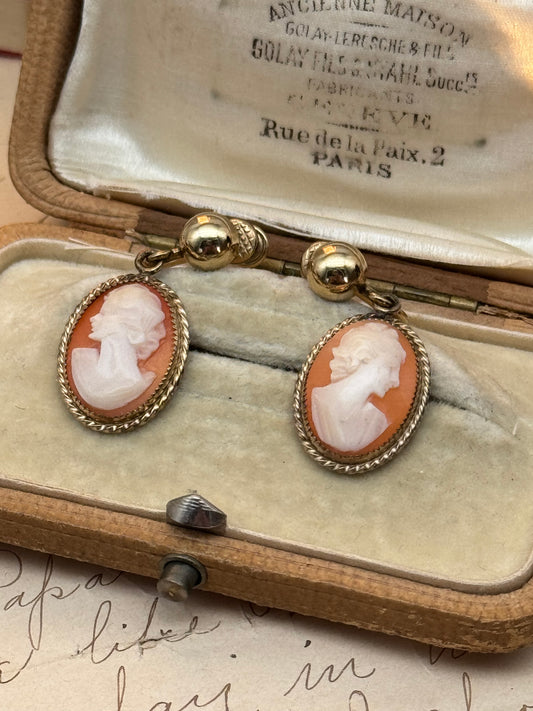 Vintage Gold Filled Cameo Earrings Screw Back Dangler