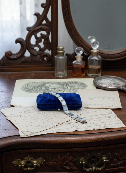 Vintage Signed FAS Mother Of Pearl Sterling Silver Panel Bracelet 6.5”