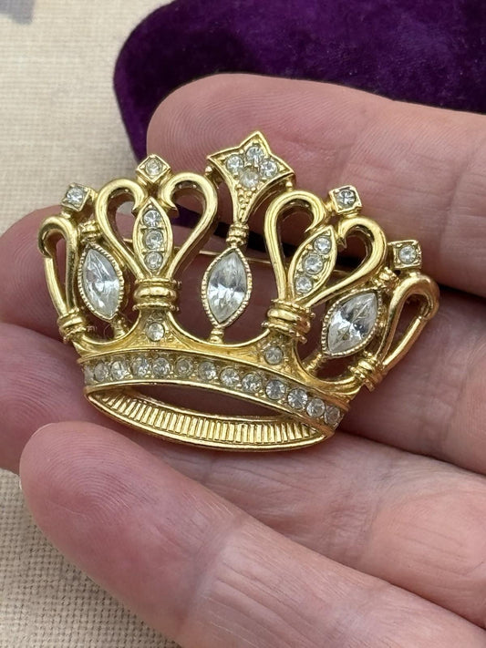 KJL for Avon Crown Brooch Goldtone Rhinestone Signed Vintage