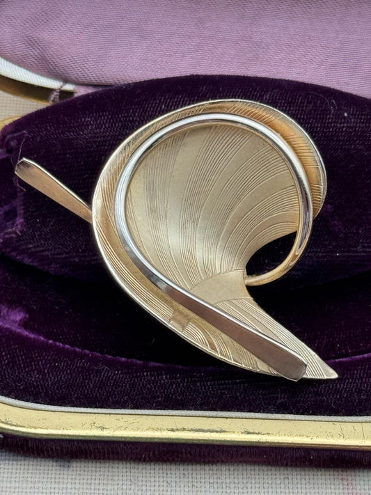Vintage Coro Pegasus Brooch Modernist Goldtone Swirl Pin 2.75”