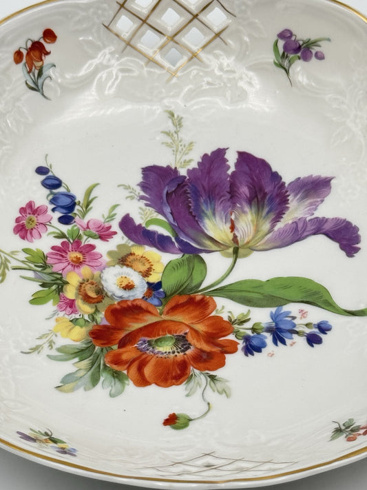 Vintage Floral Reticulated Bowl Porcelain HEDWIG 8” Estate Find