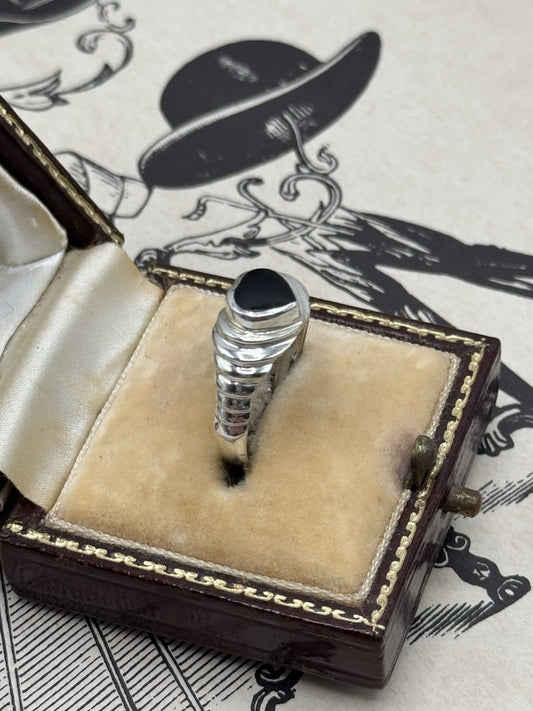 Sterling Silver BLACK ONYX Heart Ring Size 7.75
