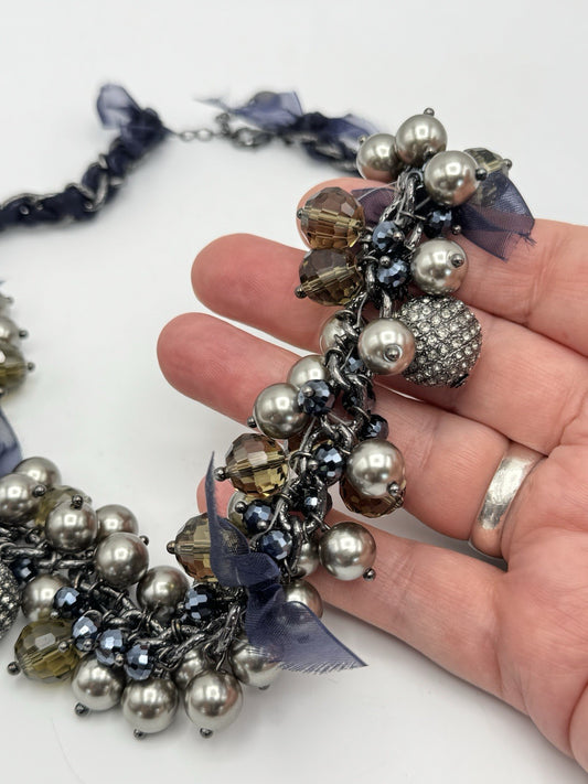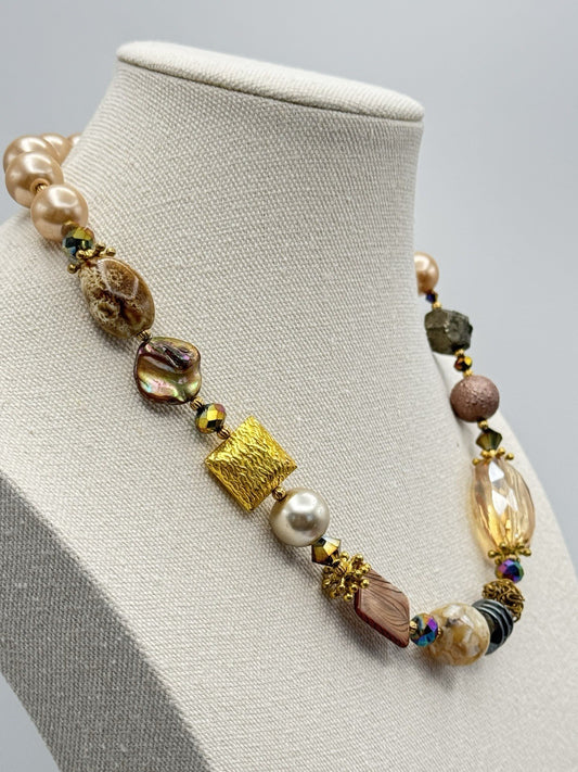 Chunky Mixed Bead Necklace FASHION Statement Goldtone Estate Find 18”