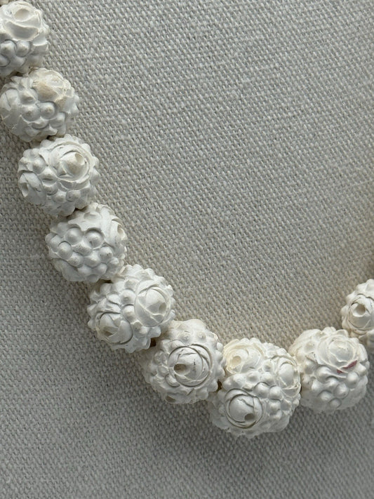 VINTAGE Necklace Featherlite BUBBLEITE Possible “Meerschaum”Hand Carved Roses Graduated Beads 26”l