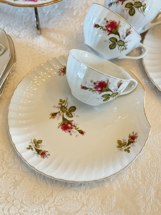 Vintage Moss Rose Snack Set 1 X Cup & Plate Shell Shape