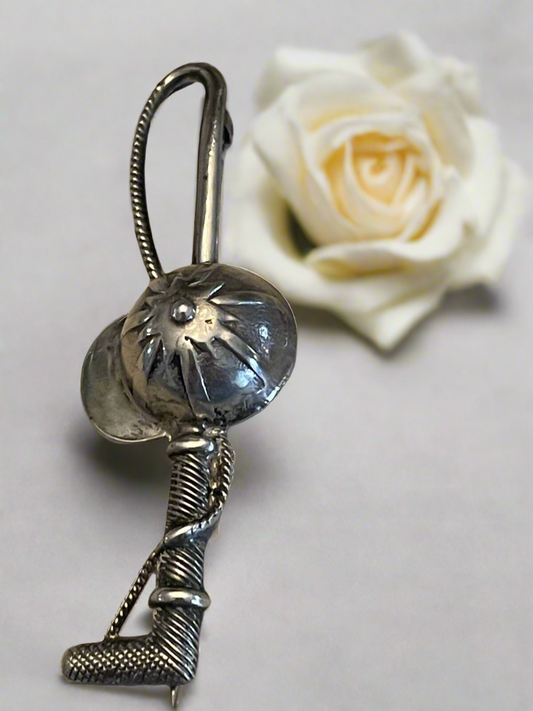 Equestrian Sterling Silver Jockey Crop & Cap Brooch VINTAGE