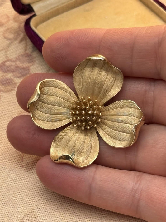 Vintage Signed Trifari Gold Tone Dogwood Flower Brooch