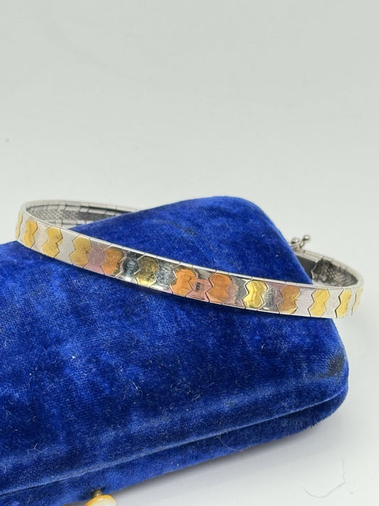 Vintage 925 Italy Omega Sterling Bracelet Gold Vermeil Accents 7.5”