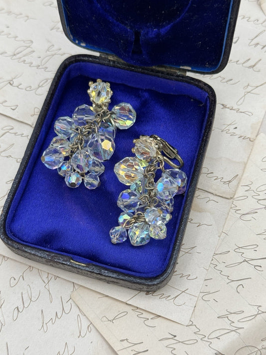 Chrystal AB Wire Hook Earrings Dangle Drop ESTATE FIND