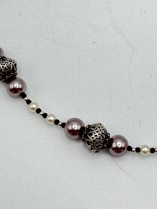Vintage Beaded Necklace & Earring Set Modern Style Simulated Pearl ESTATE FIND