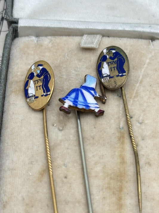 Set Of 3 ADVERTISING Linns Dutch Butter & Dutch Cleaner Stick Pins Enameled
