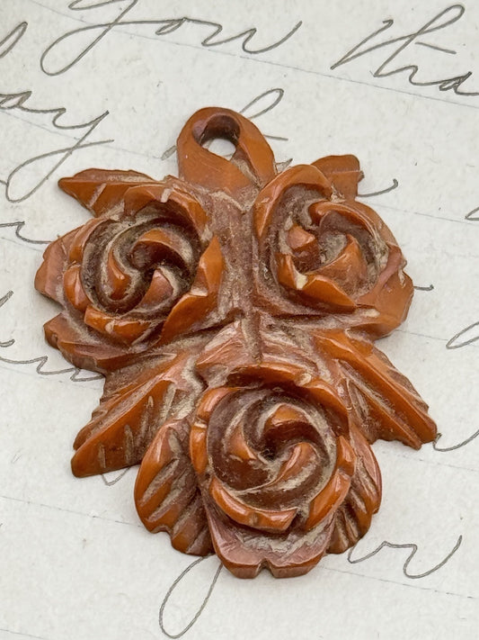 Vintage Carved Bakelite Rose Pendant Nut Brown Color ESTATE FIND