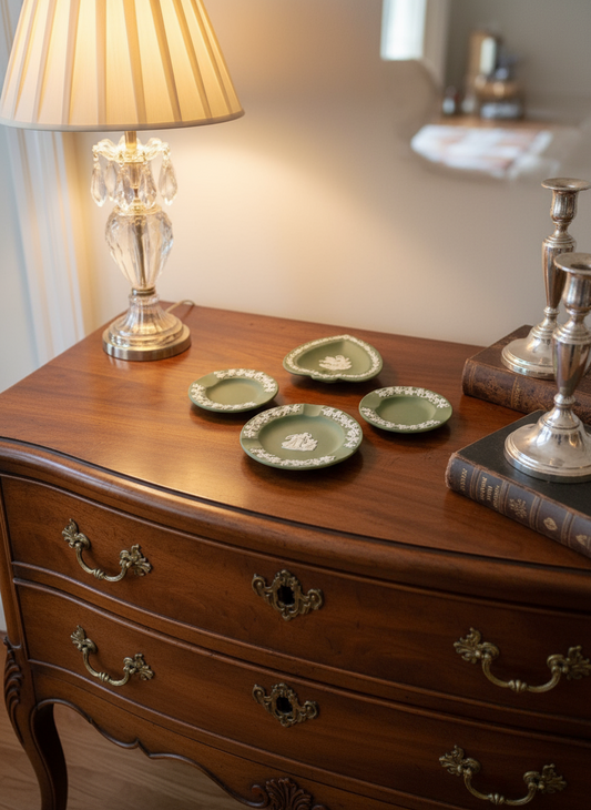 Green Wedgwood Jasperware Ashtrays Set Of 4 50s & 60s Vintage