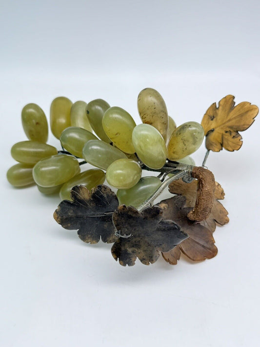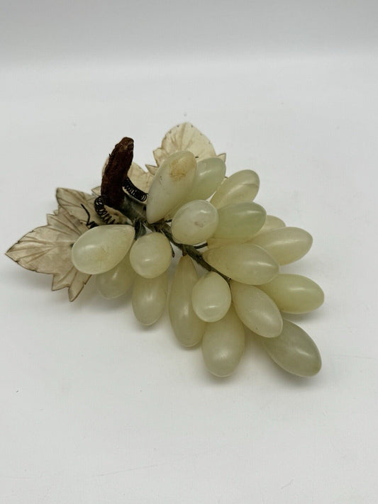 Vintage Grape Alabaster Jade Stone Cluster Light Grapes 4 Leaves