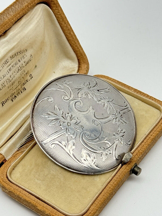 Antique Tested Coin Silver Old Watch Back Engraved Brooch Pin