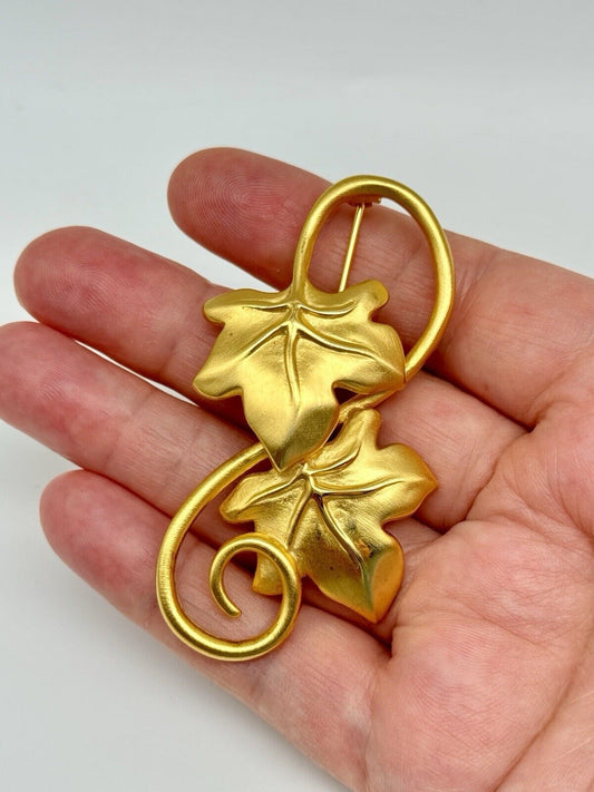 Signed GIVENCHY Vintage Modernist Wine Leave Brooch Goldtone French DESIGNER