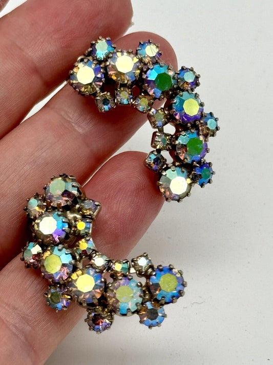 Verified JULIANE D&E Earrings Blue Crescent AB RHINESTONE Ref #1250