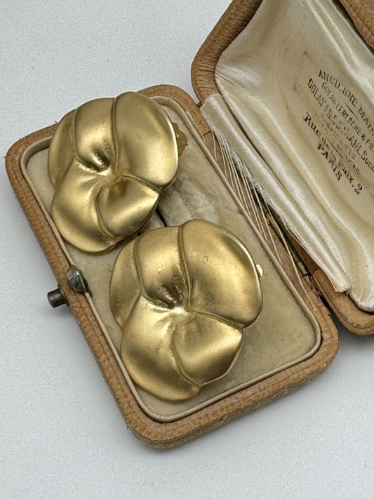 Vintage Pair Pansy Earrings Goldtone Clip-on SIGNED DEO