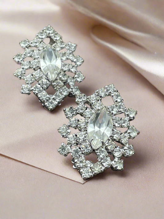 Vintage Rhinestone Earrings Multifaceted Clear Rhinestones