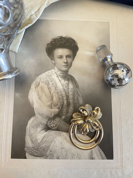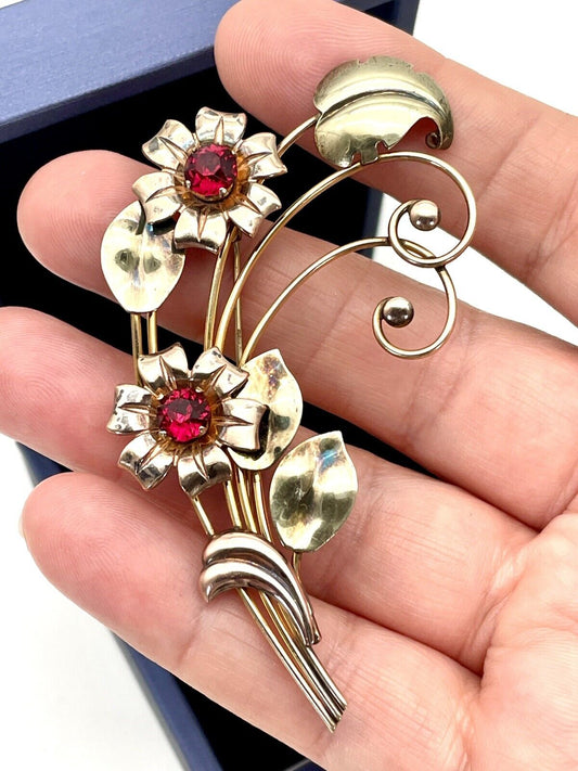Vintage Harry Iskin 1/20 10K Gold Filled Red Flower Bouquet 3” Brooch Pin