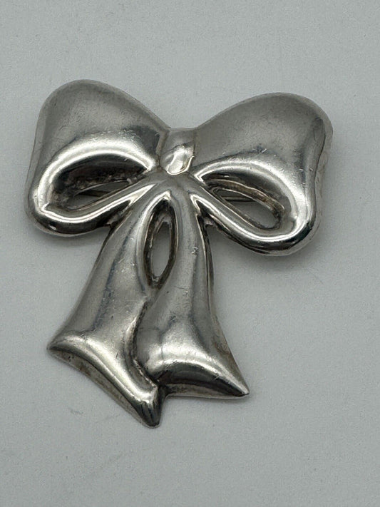 Pendant & Brooch Mexican Sterling TAXCO 925 Bow 2” Substantial Signed TC-55