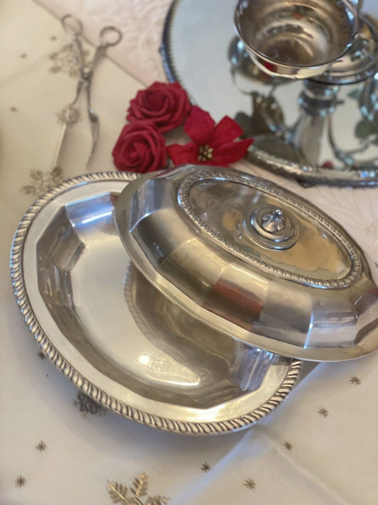 Antique Silver Plated Lidded Entree Serving Dish Monogramed