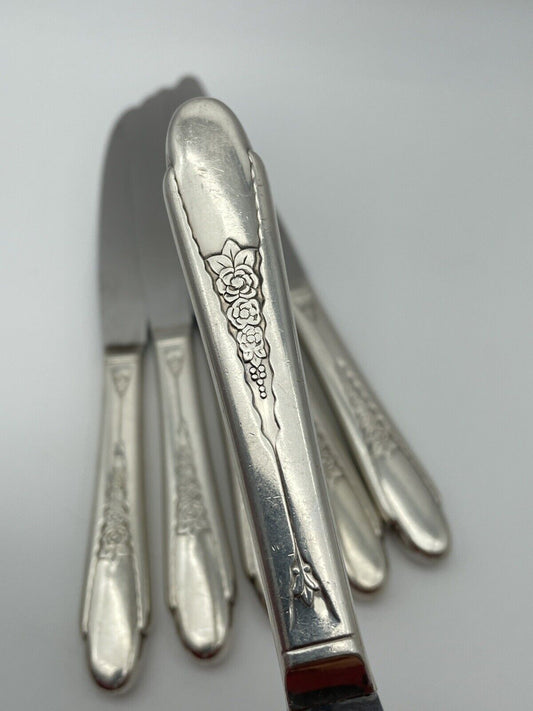 6 *WM Rogers & Son* 1941 PRISCILLA / LADY ANN Dinner Knives Silverplate IS