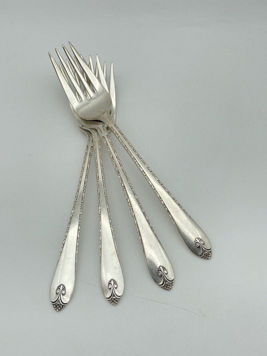 4 *WM Rogers & Son* 1941 PRISCILLA / LADY ANN Salad Forks Silverplate IS