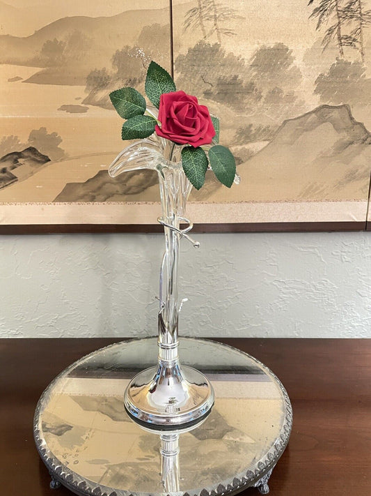 Epergne Art Glass Lily flower with Silver Display Stand 15" MINT