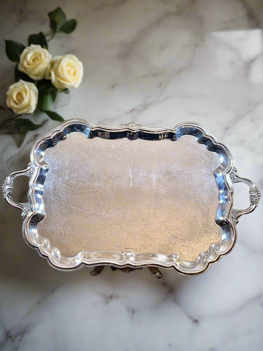 Silverplate Tray Victorian Style American Rogers HANDLED & Footed Chased VINTAGE