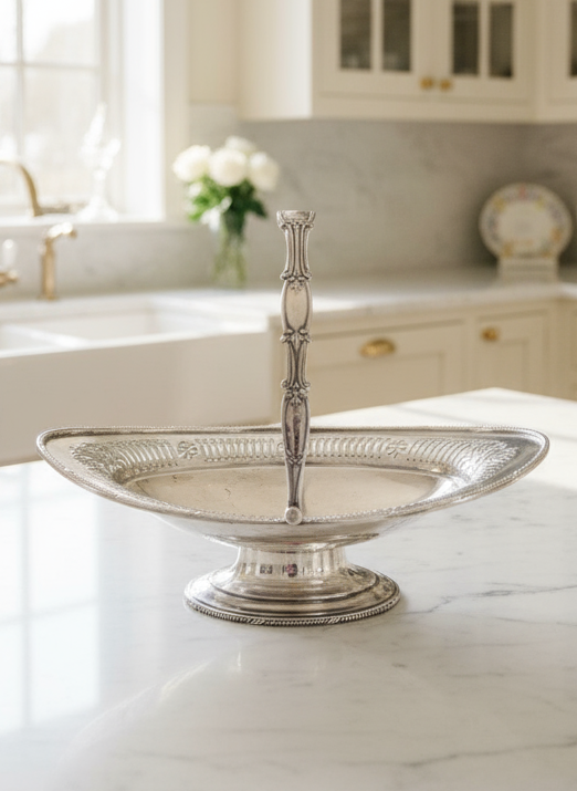 Vintage Silver Plated Oval Serving Tray Platter Basket Circa 12” ESTATE FIND