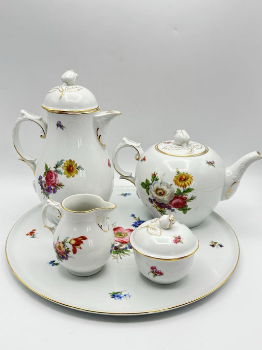 Fürstenberg Dresden Floral Porcelain 5 Piece Tea Coffee Set Tray Germany Vintage