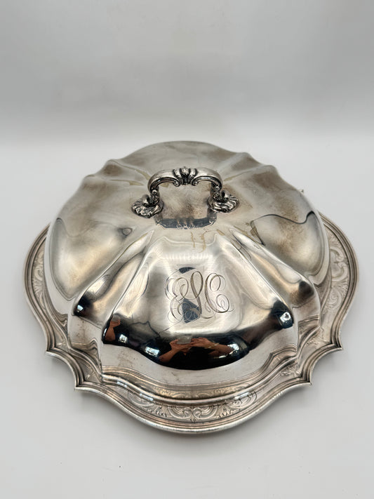 Vintage Reed & Barton Silverplate Dome Serving Dish w/ Tray Monogrammed
