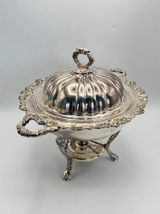 Wallace Baroque Silverplate Chafing Dish 244 Ornate Footed with Burner