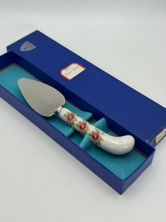 Vintage PRILL Sheffield England Porcelain Handle Cheese Server 7” w/ Box