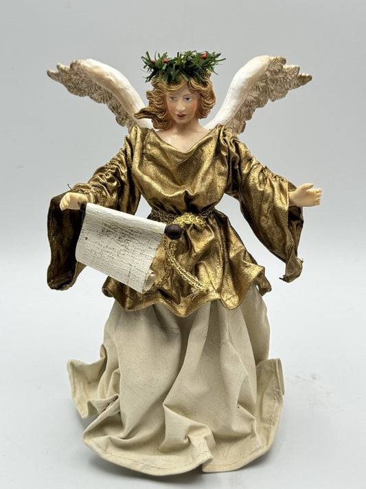 Vintage Christmas Tree Topper ANGEL Fabric Wings Gold Hymn Sheet 9.5 Inch